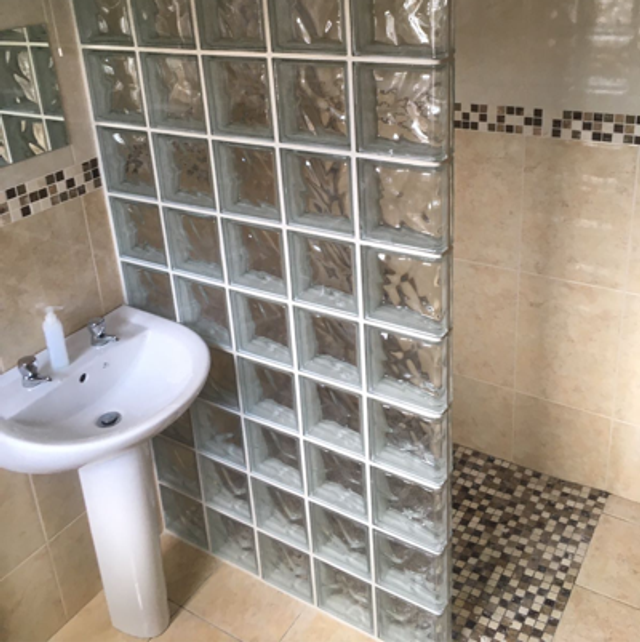 Glass Block Shower Wall 1mtr wide x 2mtrs high complete with all the required items